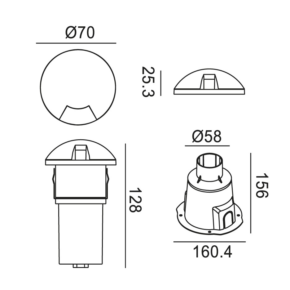 | Référence | LED | Puissance (W) | Voltage (V) | Flux (Lm) | Dia (mm) | H (mm) | Matière | IP |