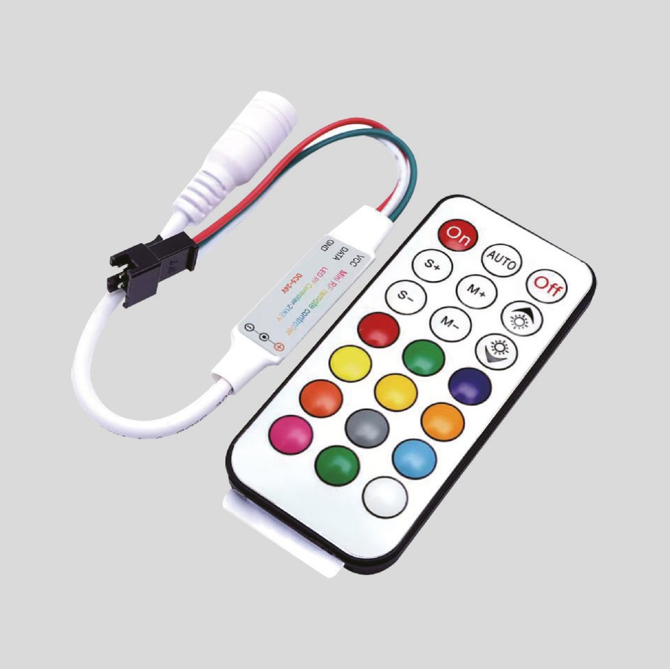Paramètres de base 1.Tension de fonctionnement : DC 12-24 V 2.Points de contrôle : jusqu'à 2048 pixels peuvent être contrôlés 3.Distance de télécommande : 15 mètres 4.Modèle de pile : AAA (disponibles dans la plupart des magasins - 2 piles fournies) 5.Modes d'effet : 28 modes chaque mode inclut : - Lumières allumées avec effet de "flux d'eau" - Lumières éteintes avec effet de retour |