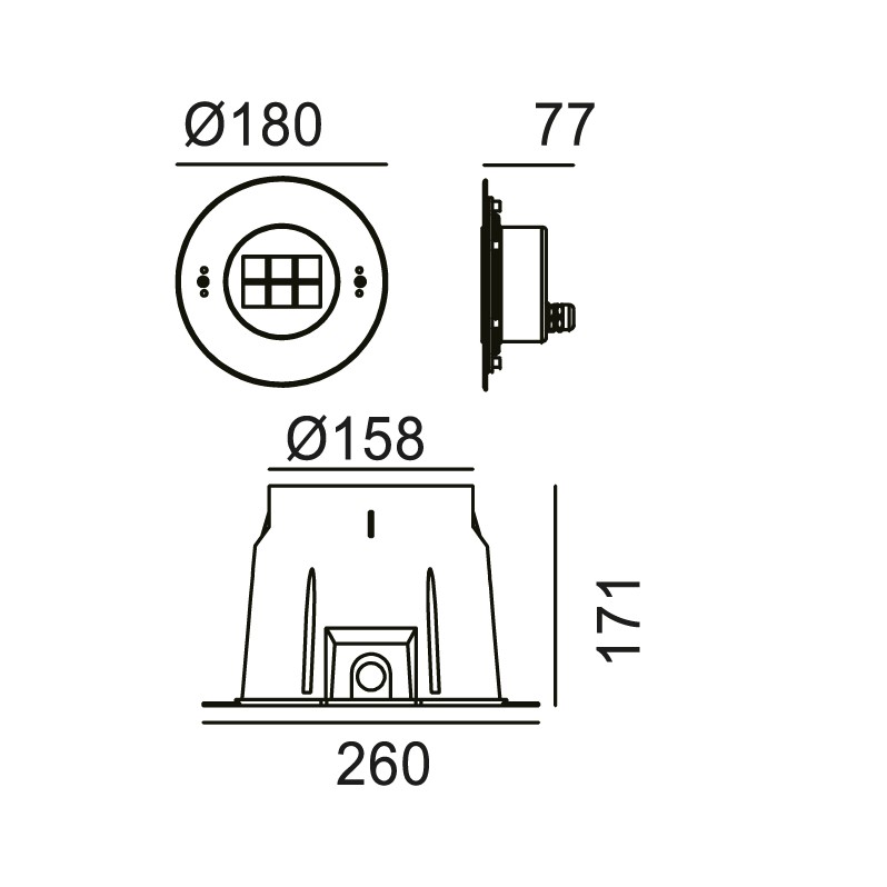 | Référence | LED | Puissance (W) | Voltage (V) | Flux (Lm) | Dia (mm) | H (mm) | Matière | IP |